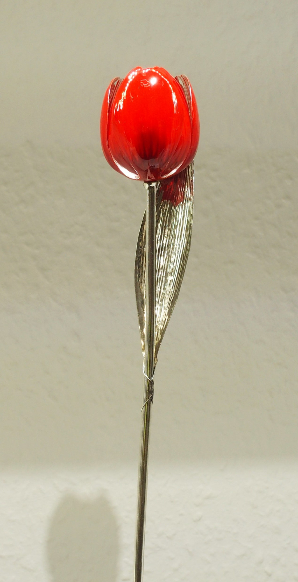 Ezüst - Tulipán - piros kézzel festett 23cm